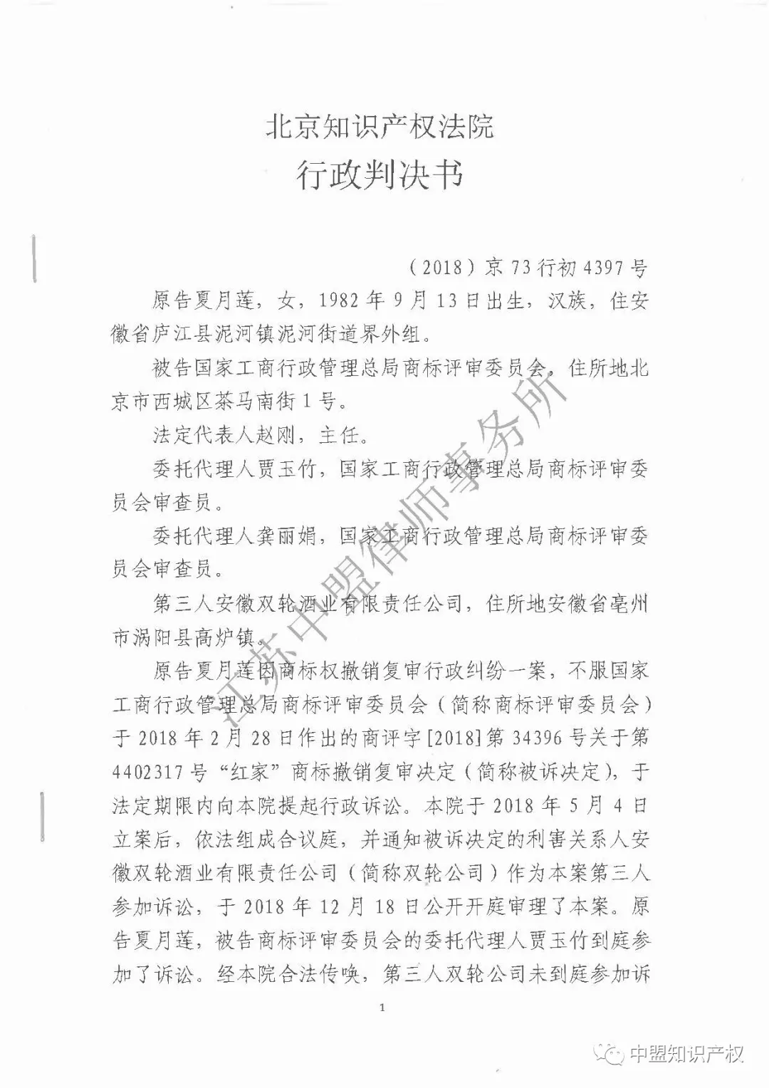 若不進(jìn)一步推進(jìn)撤銷程序,訴爭商標(biāo)就不會(huì)被撤銷,將大幅降低當(dāng)事人“家之紅”商標(biāo)成功注冊的成功率,加之我所認(rèn)為商評委對證據(jù)的審查存在一定錯(cuò)誤,因此當(dāng)事人在我所的建議下,繼續(xù)針對訴爭商標(biāo)委托我所向北京知識(shí)產(chǎn)權(quán)法院提起行政訴訟程序。