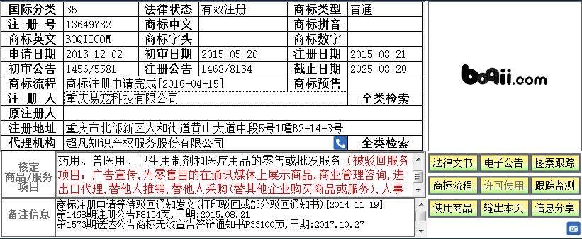 二、由國家知識產(chǎn)權(quán)局針對第13649782號“boqii.com”商標(biāo)提出的無效宣告請求重新作出裁定。