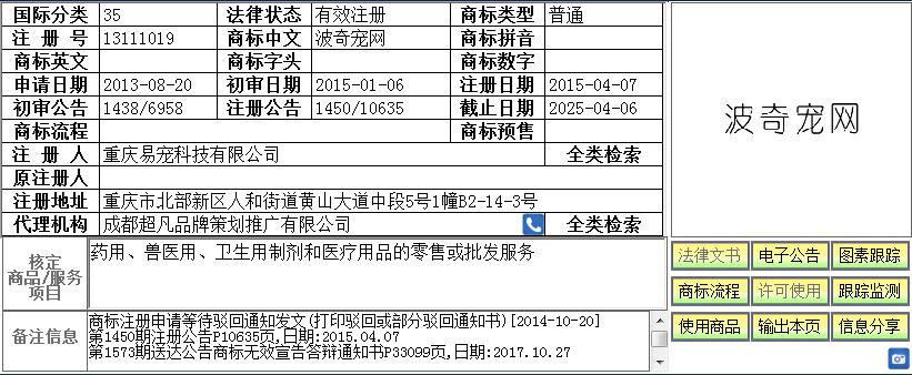 二、由國家知識產(chǎn)權(quán)局針對第13111019號“波奇寵網(wǎng)”商標(biāo)提出的無效宣告請求重新作出裁定。