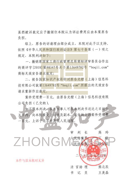 最終,一審法院撤銷(xiāo)國(guó)知局做出的無(wú)效宣告決定,障礙商標(biāo)成功被撤銷(xiāo),補(bǔ)充注冊(cè)商標(biāo)成功初步審定并公告,申請(qǐng)人的權(quán)利得到了保護(hù)。