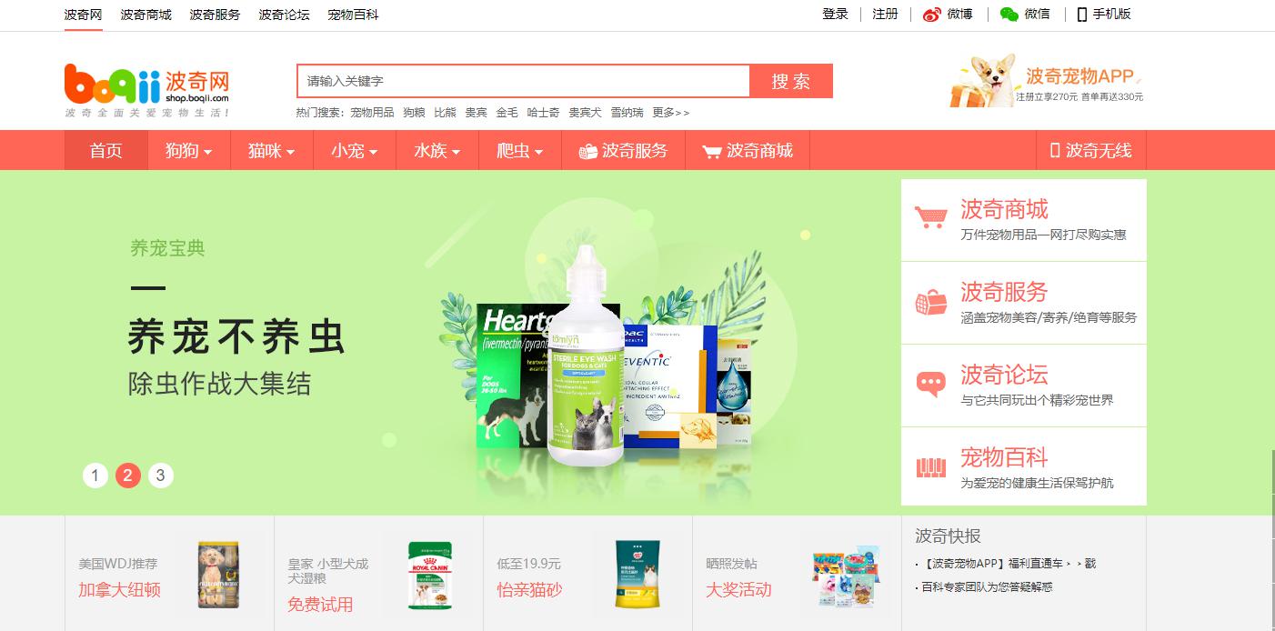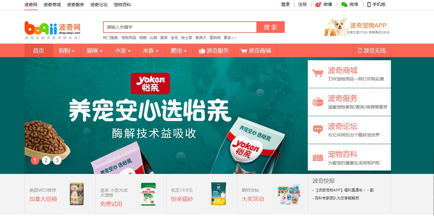 早在2007年8月4日,申請(qǐng)人旗下的寵物電子商務(wù)服務(wù)平臺(tái)(shop.boqii.com)為了長(zhǎng)期發(fā)展就已經(jīng)注冊(cè)了相應(yīng)域名,并取得了頂級(jí)國(guó)際域名證書(shū)。2008年9月開(kāi)始,涵蓋波奇商城、寵物百科等項(xiàng)目的“波奇網(wǎng),www.boqii.com”平臺(tái)就已經(jīng)上線。一直到今天,且其網(wǎng)頁(yè)仍然以組合圖樣來(lái)面向廣大消費(fèi)群眾進(jìn)行推廣宣傳。由此可見(jiàn),申請(qǐng)人“boqii.com”商標(biāo)的使用時(shí)間明顯早于引證商標(biāo)申請(qǐng)日期(2013年12月02日),其獨(dú)創(chuàng)性顯而易見(jiàn)。我們有理由相信引證商標(biāo)是對(duì)光橙(上海)信息科技有限公司名下的波奇網(wǎng)系列商標(biāo)的搶注。